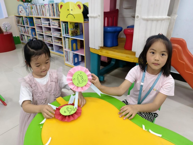 手工环节中,每个孩子亲手折出了一张“勇气大拇指”奖状。他们用小手认真折叠,把鼓励和表扬送给自己和故事里敢于认错的小兔子。这不仅锻炼了孩子们的动手能力,更让他们记住了“做错事不撒谎,主动承认就是好孩子”的道理。