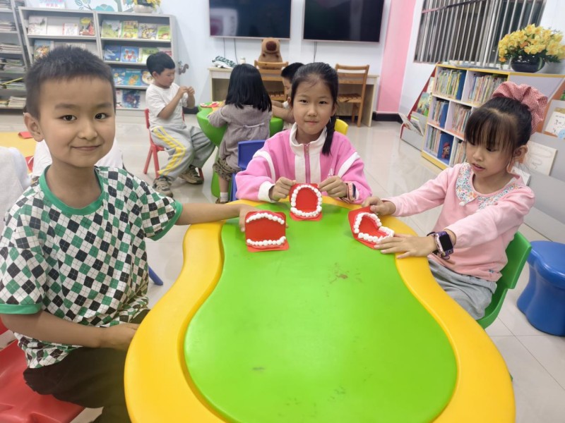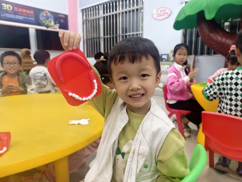 随后的手工环节,孩子们在老师的指导下,用彩色纸黏土亲手制作《我们的牙齿》模型。通过揉、捏、塑形,他们不仅创造出一副副可爱的牙齿模型,更在动手过程中直观了解了牙齿的基本结构和保护牙齿的重要性。