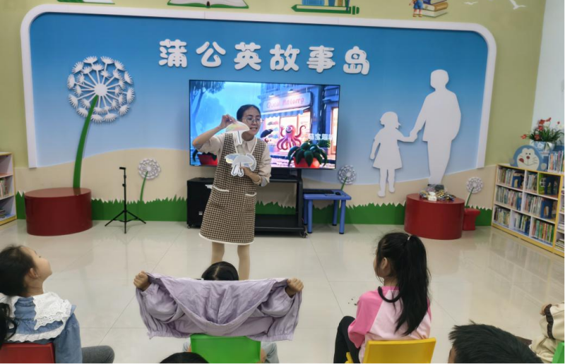 2025年10月11日晚,泸西县图书馆“蒲公英故事岛”第21期《章鱼先生卖雨伞》色彩认知音乐故事会欢乐开展。二十八名4至9岁的小读者走进章鱼先生的“快乐雨伞铺”,在故事与音乐的奇妙融合中,开启了一场充满色彩与节奏的趣味之旅。