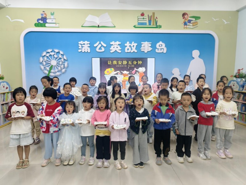 活动在黄东琴老师生动的讲述中展开。孩子们通过绘本《让我安静五分钟》,认识了大象妈妈庞太太和她三个活泼好动的孩子。故事里,庞太太只想安安静静地待上五分钟,却不断被孩子们的“热情拜访”打断。她始终没有生气,而是用无限的耐心和爱回应每一个孩子。这个贴近生活的故事,让孩子们在笑声中学会了换位思考,感受到家人之间理解与包容的珍贵。