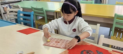 巧手剪纸区:在家长陪伴下,孩子们拿起安全剪刀,跟着样品图稿折剪、裁剪。灵动的窗花、可爱的小马、喜庆的春字接连成型,小小的剪刀剪出浓浓年味,也剪出孩子们的创意与巧思。
