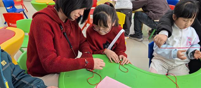 吉祥结艺区:红线穿梭,老师倾情教学,家长与孩子相互配合,学习编织简易吉祥结。在一绕一扣中了解传统结艺文化,一根根红线编织成寓意美好的吉祥结,也编织出亲子间的温馨时光。