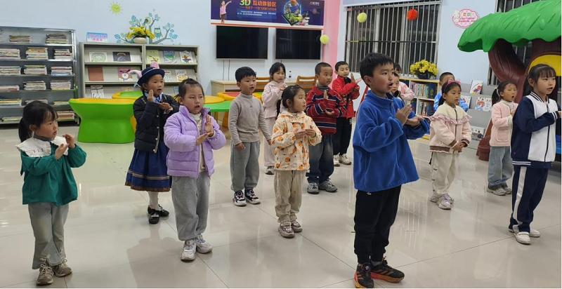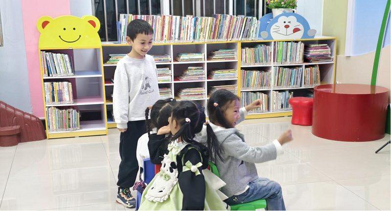 开班两周后,小朋友们已经能齐声朗诵《新学期,你好》。清亮的童声在绘本馆里回荡,那份整齐和自信,让在场的人都忍不住为他们鼓掌。从最初有的孩子不愿意张嘴,有的声音洪亮却没有节奏,到两周后能默契配合完成一段朗诵,变化就发生在这短短几堂课里。