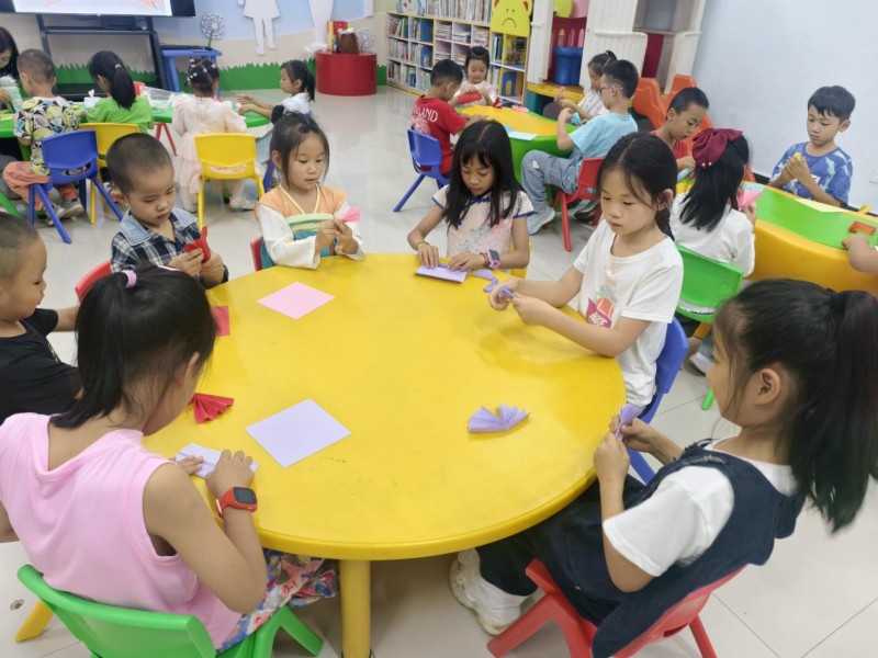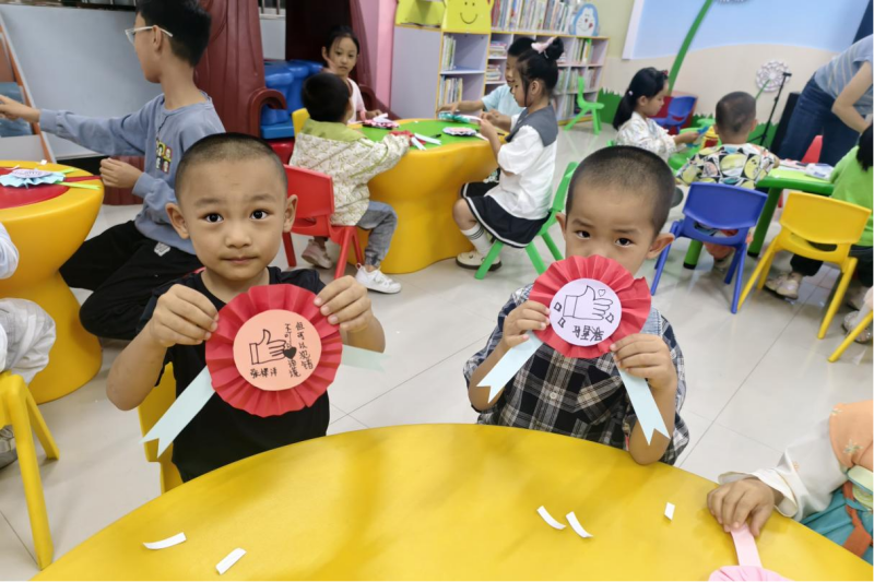 手工环节中,每个孩子亲手折出了一张“勇气大拇指”奖状。他们用小手认真折叠,把鼓励和表扬送给自己和故事里敢于认错的小兔子。这不仅锻炼了孩子们的动手能力,更让他们记住了“做错事不撒谎,主动承认就是好孩子”的道理。