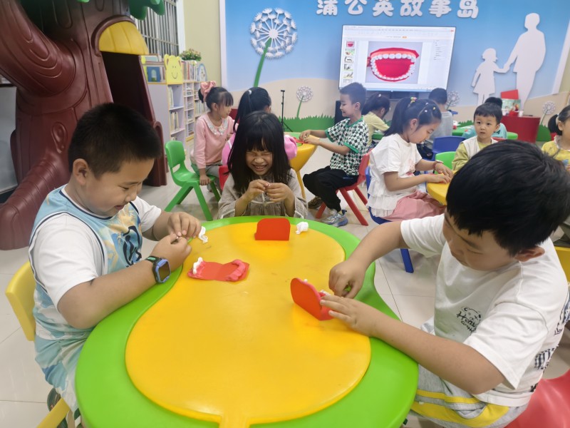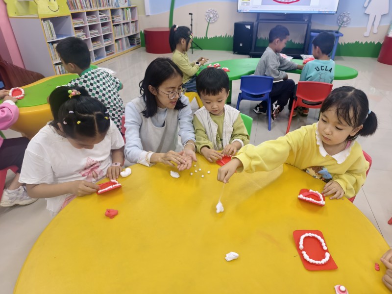 随后的手工环节,孩子们在老师的指导下,用彩色纸黏土亲手制作《我们的牙齿》模型。通过揉、捏、塑形,他们不仅创造出一副副可爱的牙齿模型,更在动手过程中直观了解了牙齿的基本结构和保护牙齿的重要性。