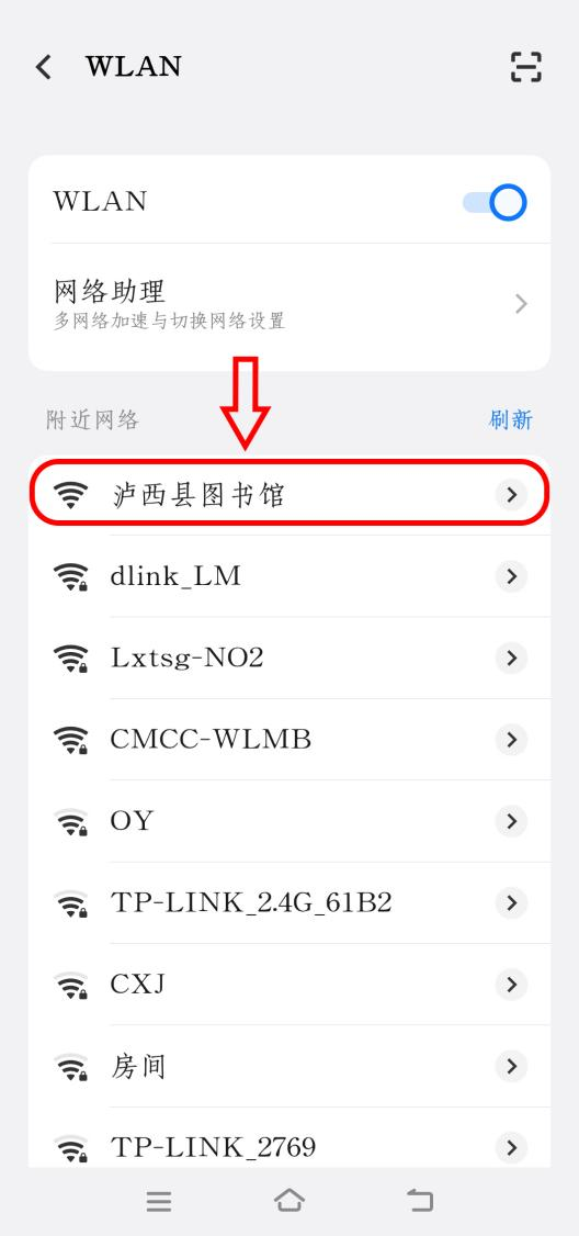 打开手机或设备的无线网络设置,搜索并选择“泸西县图书馆”。