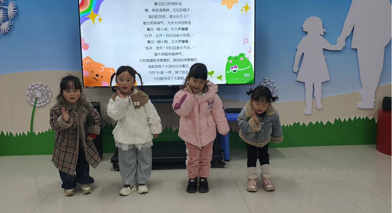朗诵不仅是技巧,更是情感的表达。通过童谣和简单诗篇,孩子们初次体会到语言里的“开心”“调皮”和“温柔”。可以观察到,孩子们在课堂上的表达越来越自然,声音中的情感也越来越丰富。