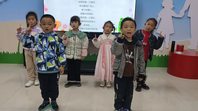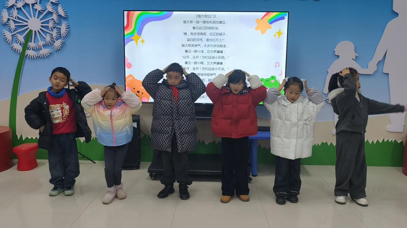 最让人欣喜的是孩子们的变化。第一次上课时,不少孩子还显得有些腼腆和生涩;到最后一堂展示课,几乎每个人都自信地举起了小手,期待着上台展示。他们学会了挺直小身板,学会了让声音“跑”得更远,更学会了用表情和动作来讲故事。当《如果我是一片雪花》的齐诵声在教室里响起时,那份童真与认真交织的专注,格外动人。